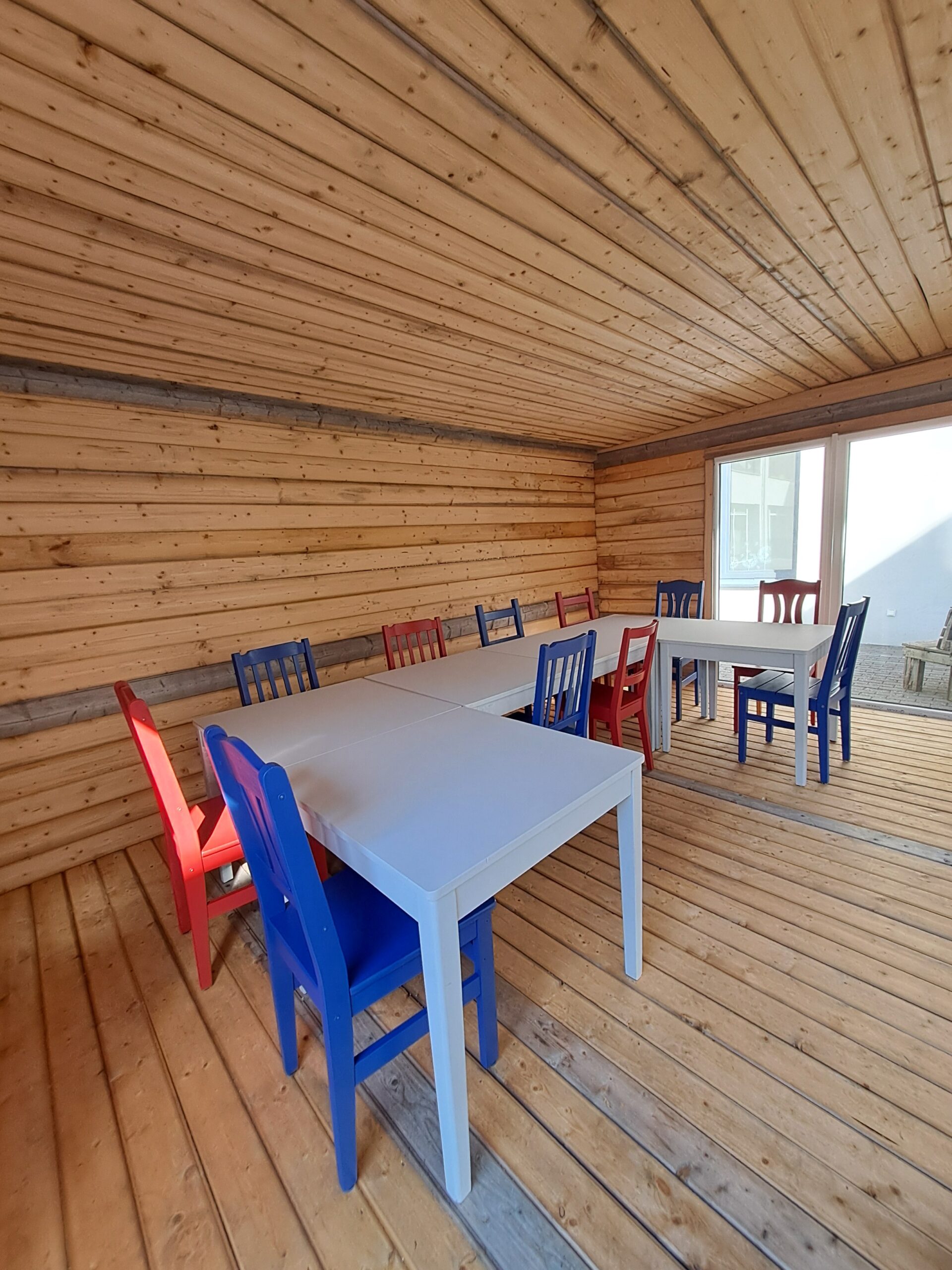 Das Häuschen ist nun mit Möbeln ausgestattet, die frisch gestrichen wurden. Fehlt nur noch die Elektrik – aber wir sind positiv gestimmt, dass wir dieses Projekt noch in diesem Herbst umgesetzt bekommen.